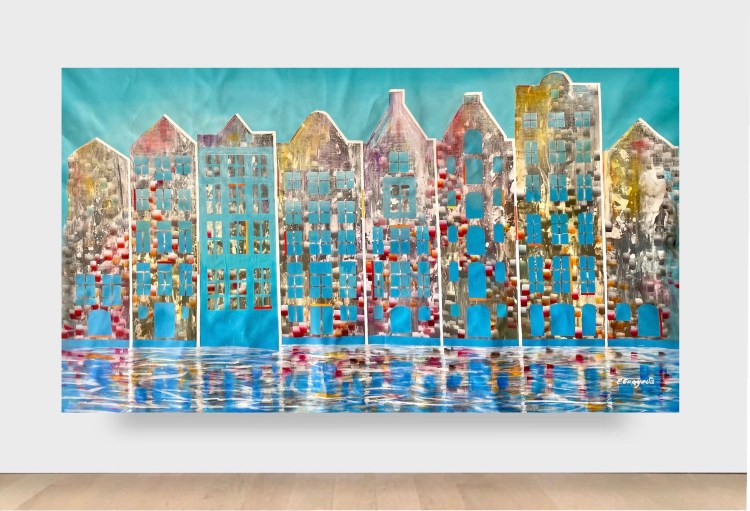 CITYSCAPE TRUE COLORS OF HOLLAND Acrylic on canvas 80×100 cm / 31×39″ CANAL REFLECTIONS IN BLUE Acrylic on canvas 150×90 cm / 59×35″