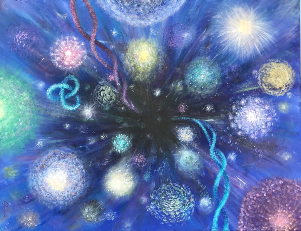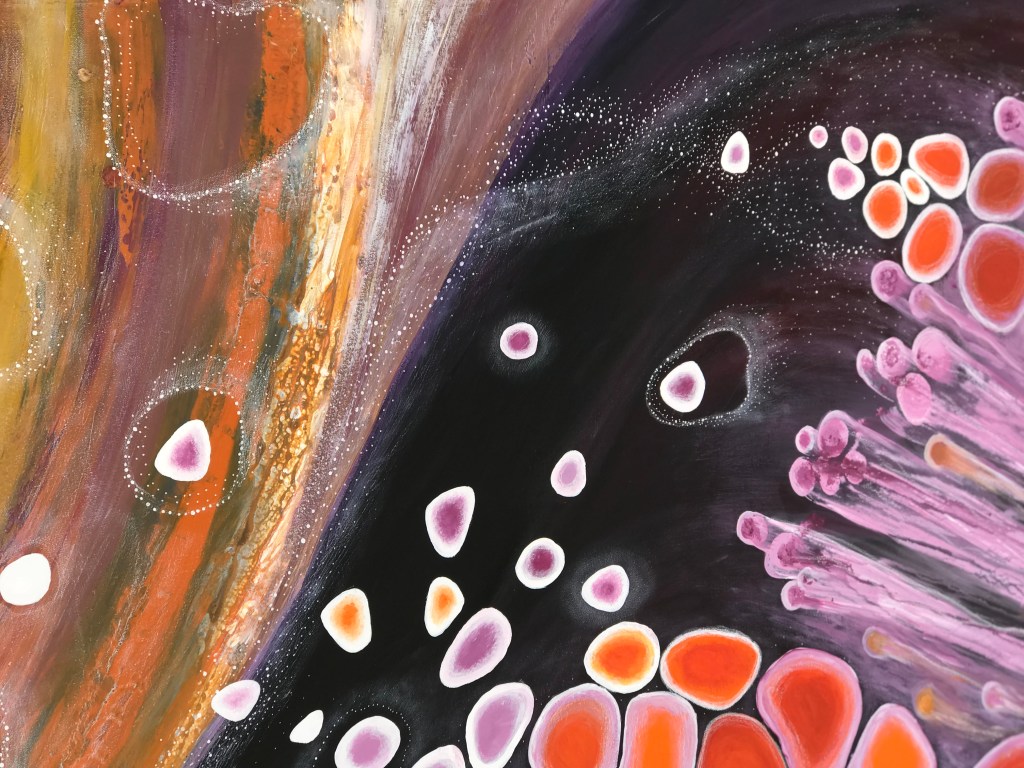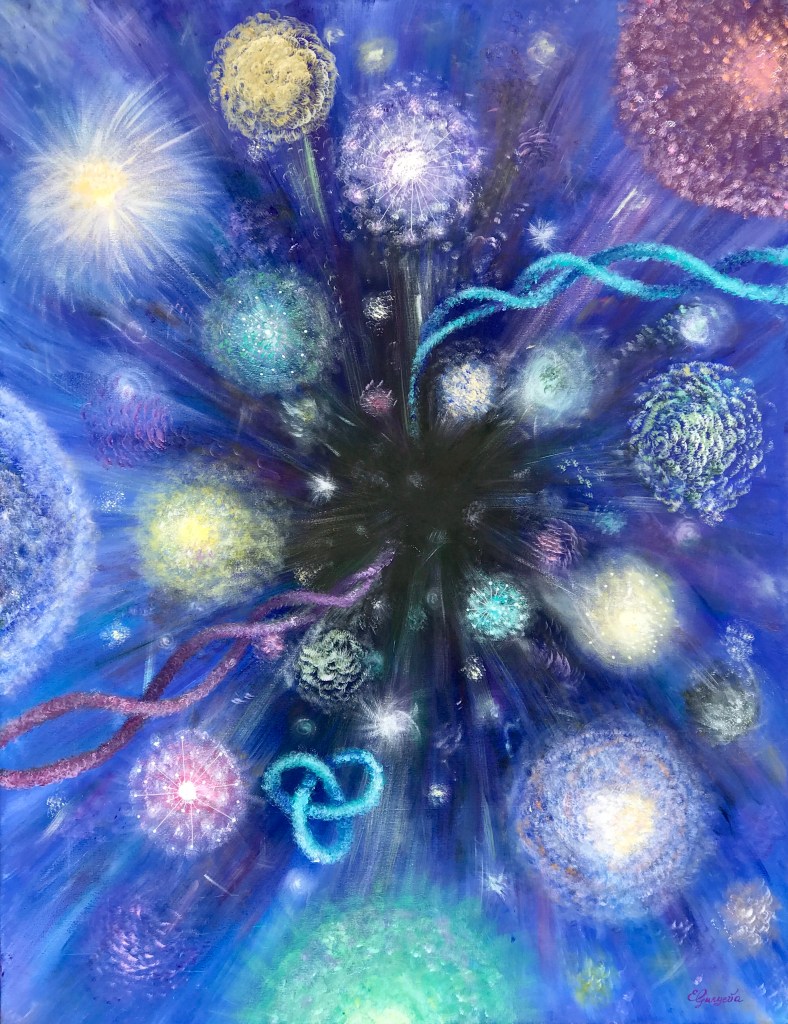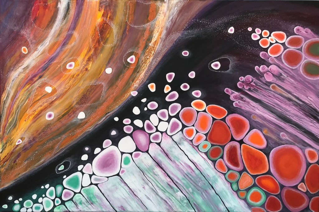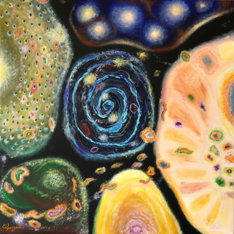 In INFINITY, I contemplate the vastness of time, space, and being. Inspired by scientific imagery of the micro and macro cosmos, these works explore the visual poetry of infinity — where the cellular and the celestial mirror one another.