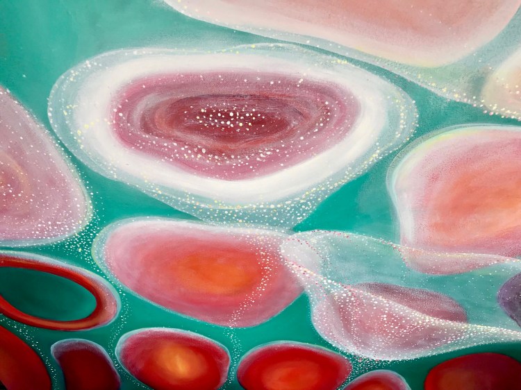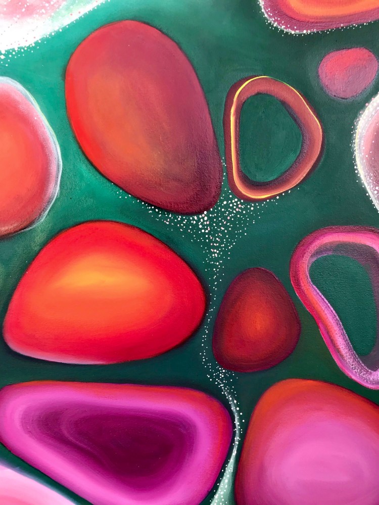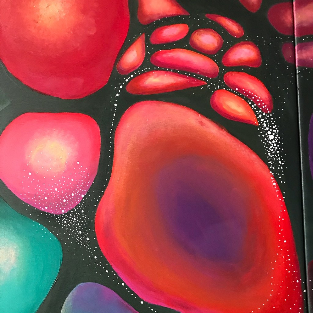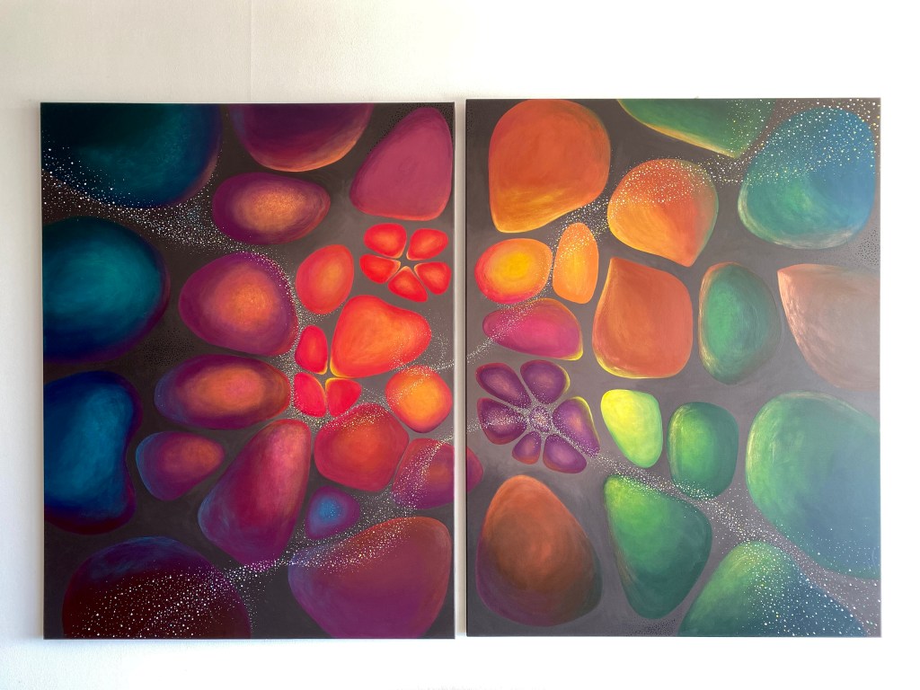 In INFINITY, I contemplate the vastness of time, space, and being. Inspired by scientific imagery of the micro and macro cosmos, these works explore the visual poetry of infinity — where the cellular and the celestial mirror one another.