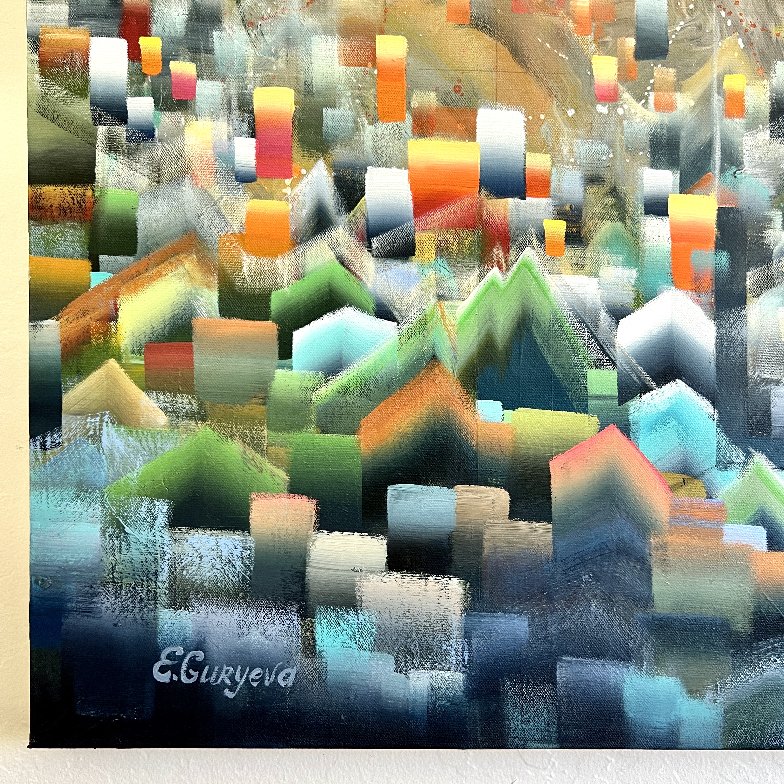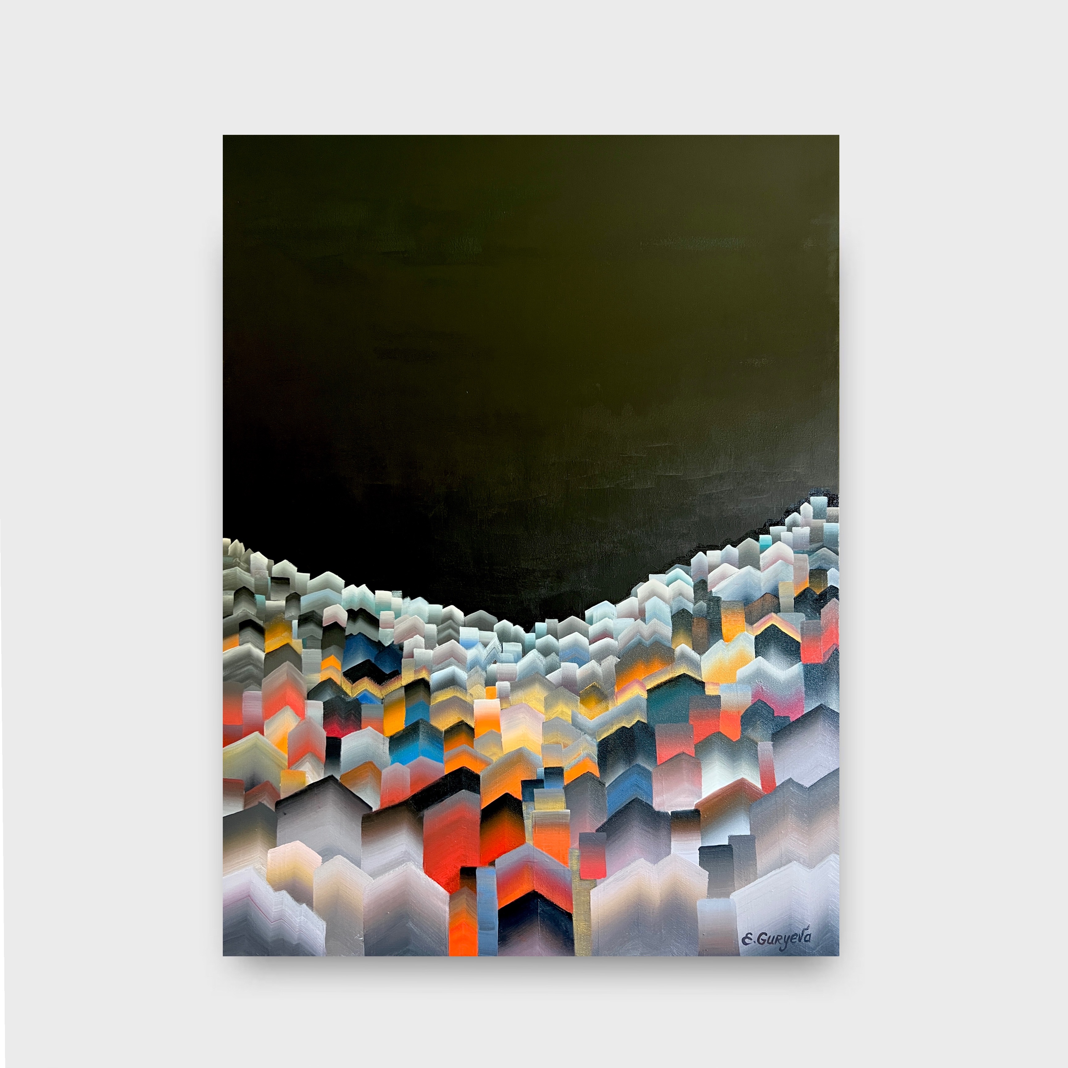 These works reflect on how we perceive transformation — often invisible, sometimes overwhelming. I use pixel-like squares to represent fragments of change — data, memory, or energy — forming new visual rhythms.