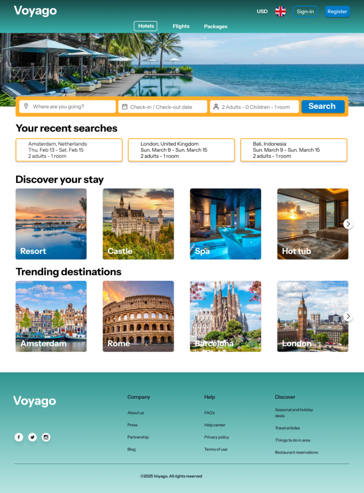 - Create a calm, structured experience for searching and booking hotels.