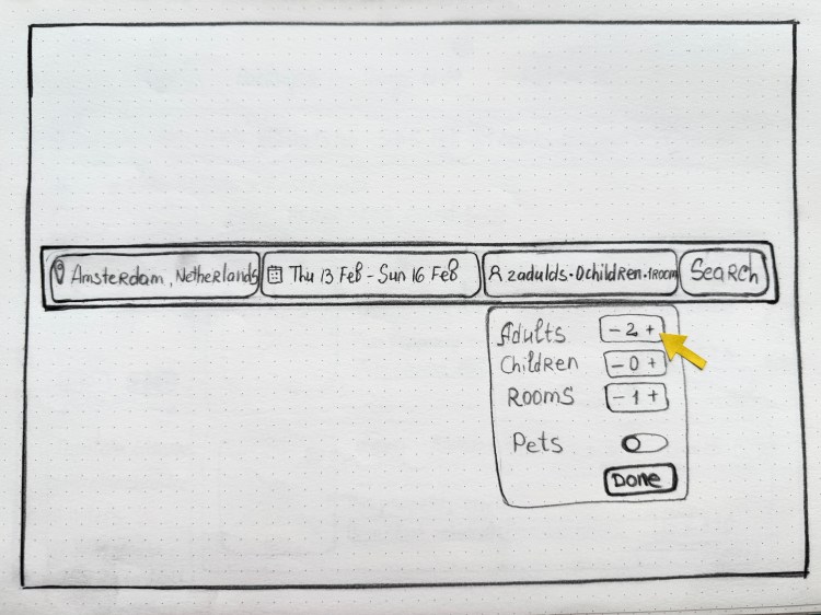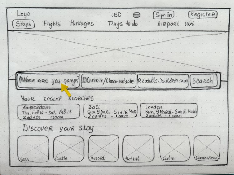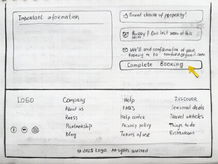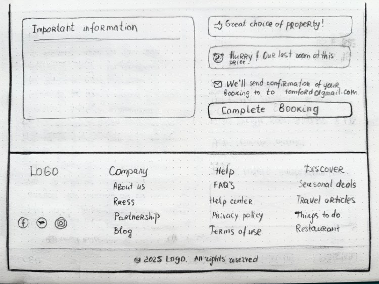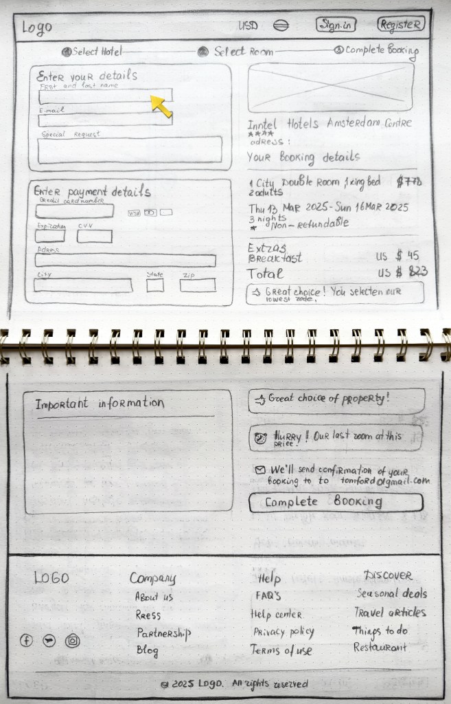 Building on insights from our research, I began with low-fidelity sketches to explore layout options and key interface concepts for the booking experience.