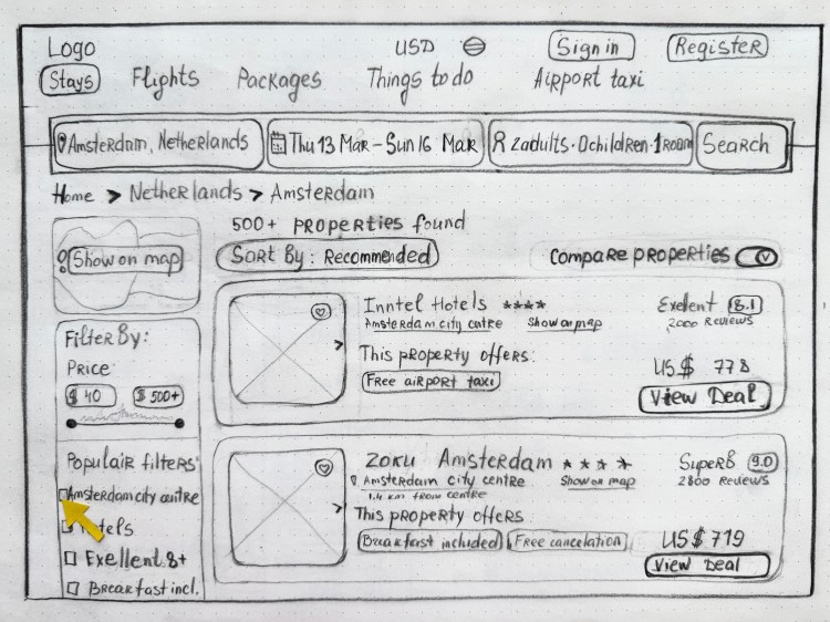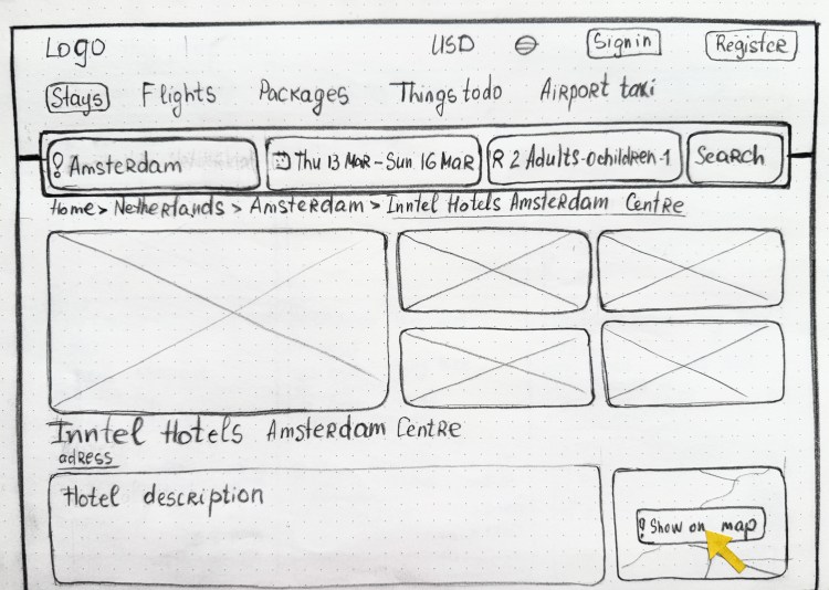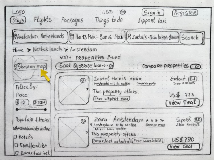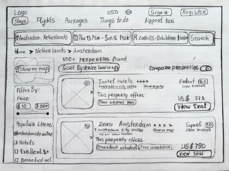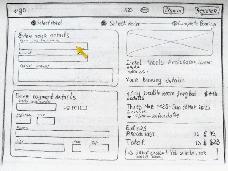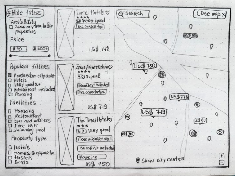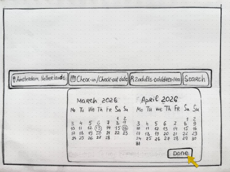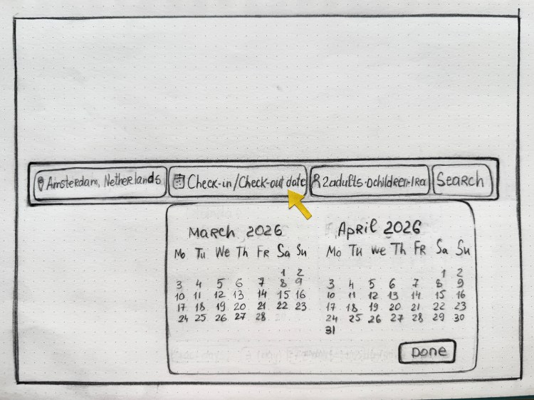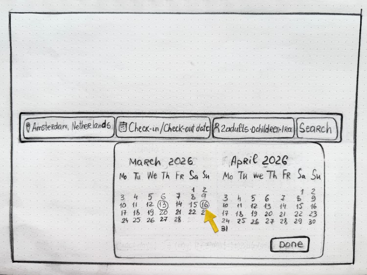 During the ideation phase, I created sketches to explore various layout options and design concepts for the booking interface. This rapid prototyping allowed for quick iterations and the collection of feedback before moving into more detailed design phases.