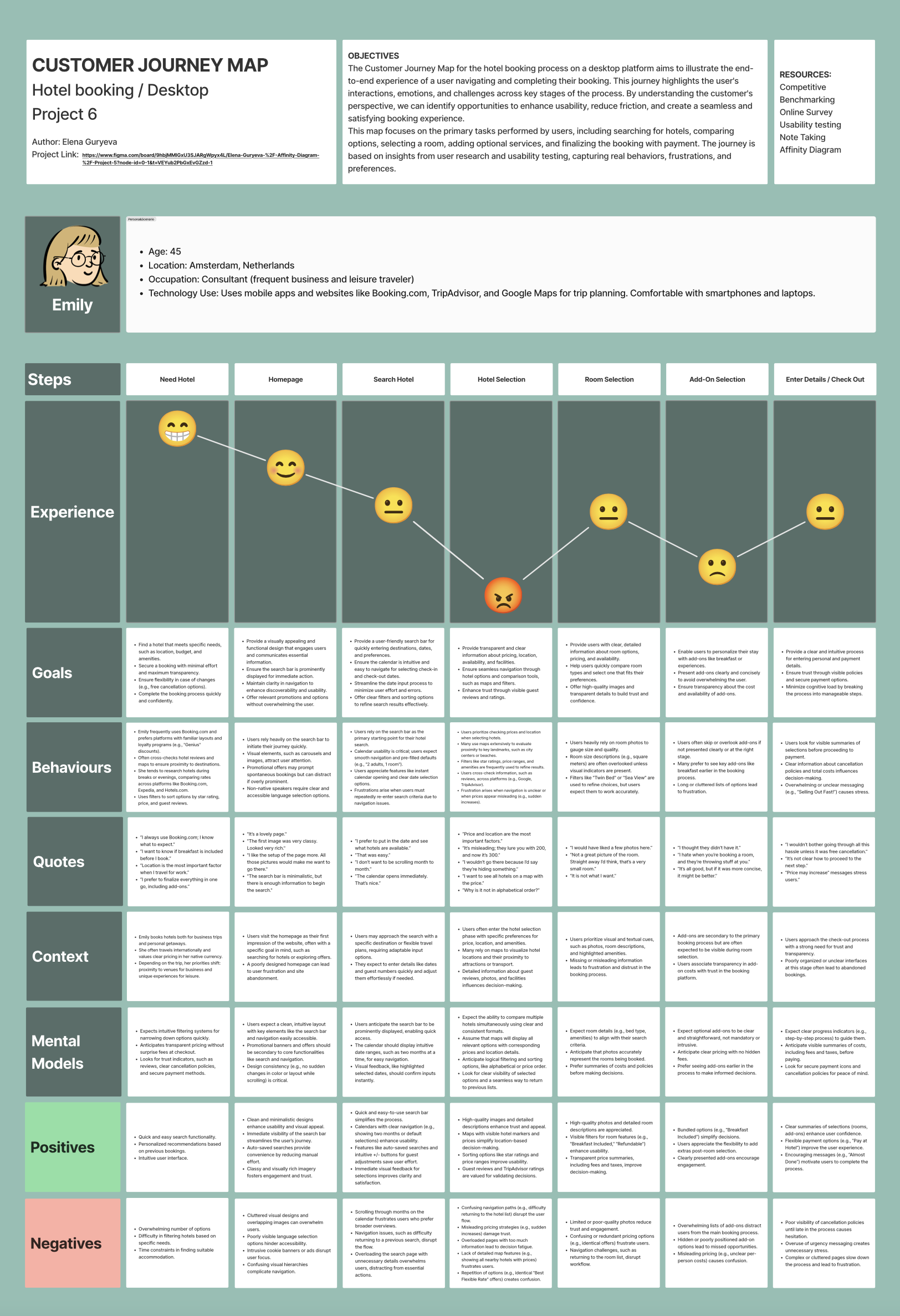 I visualized the emotional journey of users during the hotel search and booking process to identify pain points and opportunities.
